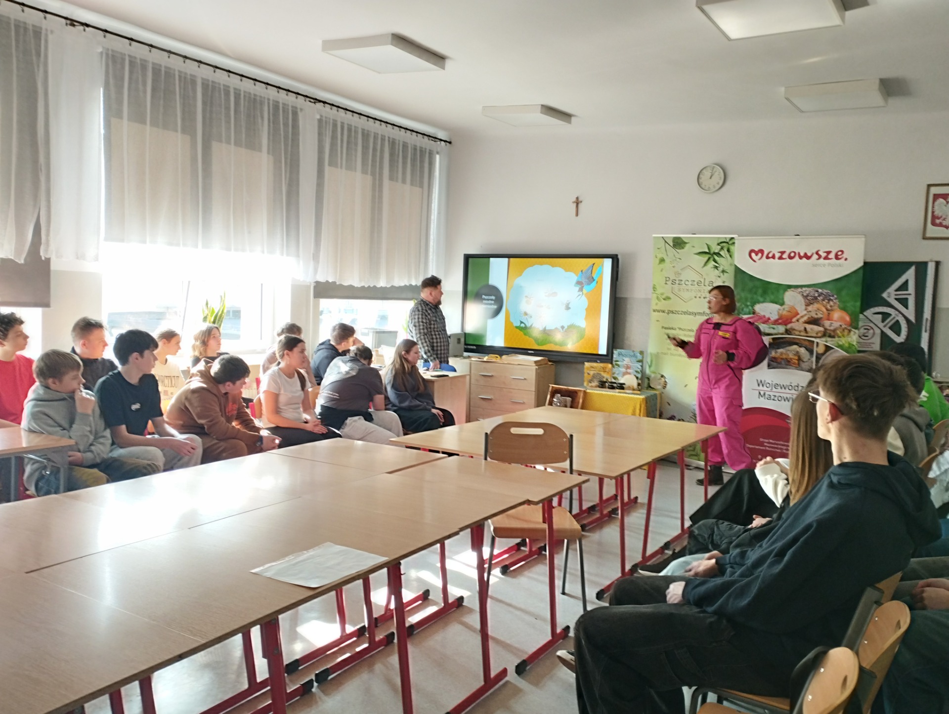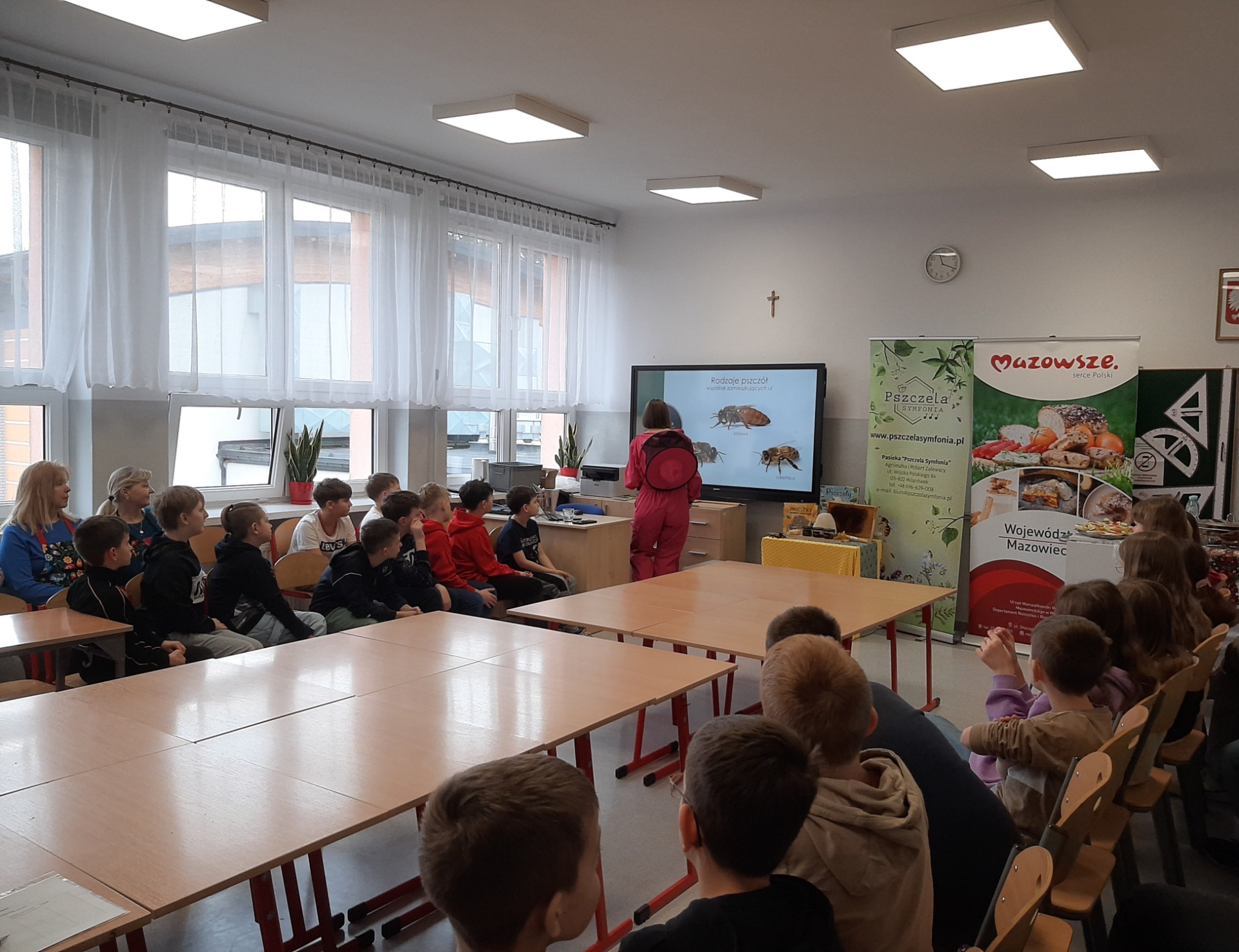 25 lutego uczniowie klas IV-VIII uczestniczyli w niezwykle ciekawym projekcie edukacyjnym Dapartamentu Rolnictwa i Rozwoju Obszarów Wiejskich Urzędu Marszałkowskiego Województwa Mazowieckiego w Warszawie reprezentowanym przez panią Patrycję Dzięcioł. Cele projektu to, m.in.: kształtowanie postaw proekologicznych wśród uczniów, poznanie środowiska życia pszczół oraz ich znaczenia dla ekosystemu.