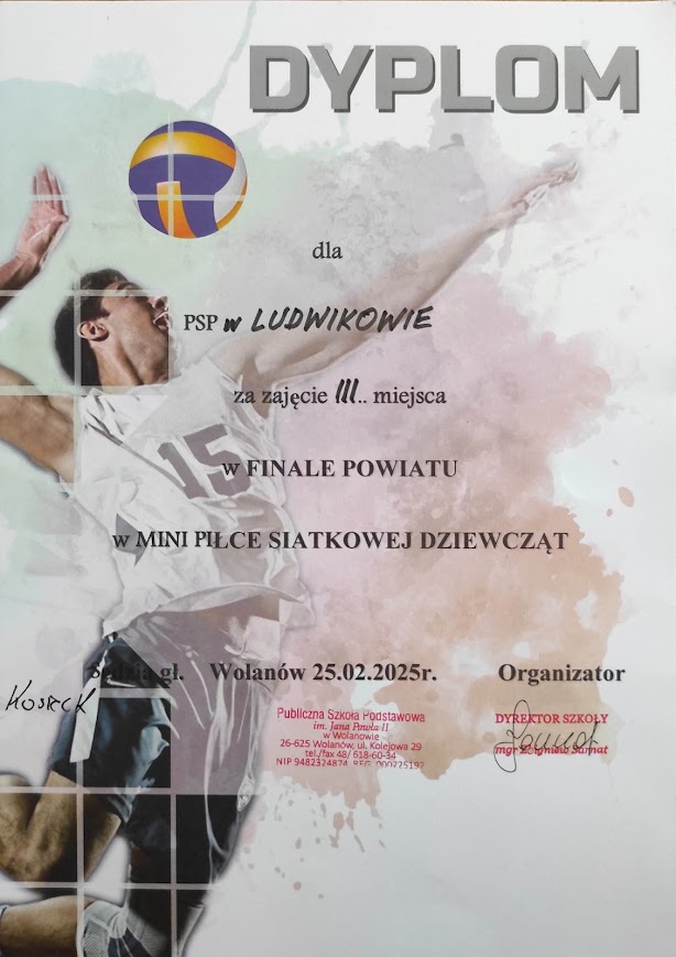 W dniu 25.02.2025 roku w PSP im. Jana Pawła II w Wolanowie odbyły się rozgrywki powiatowe XXVII Igrzysk Młodzieży Szkolnej w minisiatkówce dziewcząt. Naszą szkołę, drugi rok z rzędu na tym etapie, reprezentowało 13 uczennic: Maja Marszałek, Jagoda Drabik, Daria Fijołek, Zuzanna Głuch, Julia Gryz, Nadia Marszałek, Patrycja Mrowińska, Julia Pośnik, Zuzanna Stelmach, Marcelina Szymczak, Alicja Wieteska, Lena Zaraś, Gabriela Zgierska. Mecze były emocjonujące i pełne zwrotów akcji. Warto podkreślić, że nasza szkoła była najmniejszą w rozgrywkach a mimo to poziom gry był bardzo wysoki. Finalnie reprezentacja PSP Ludwików zajęła III miejsce.