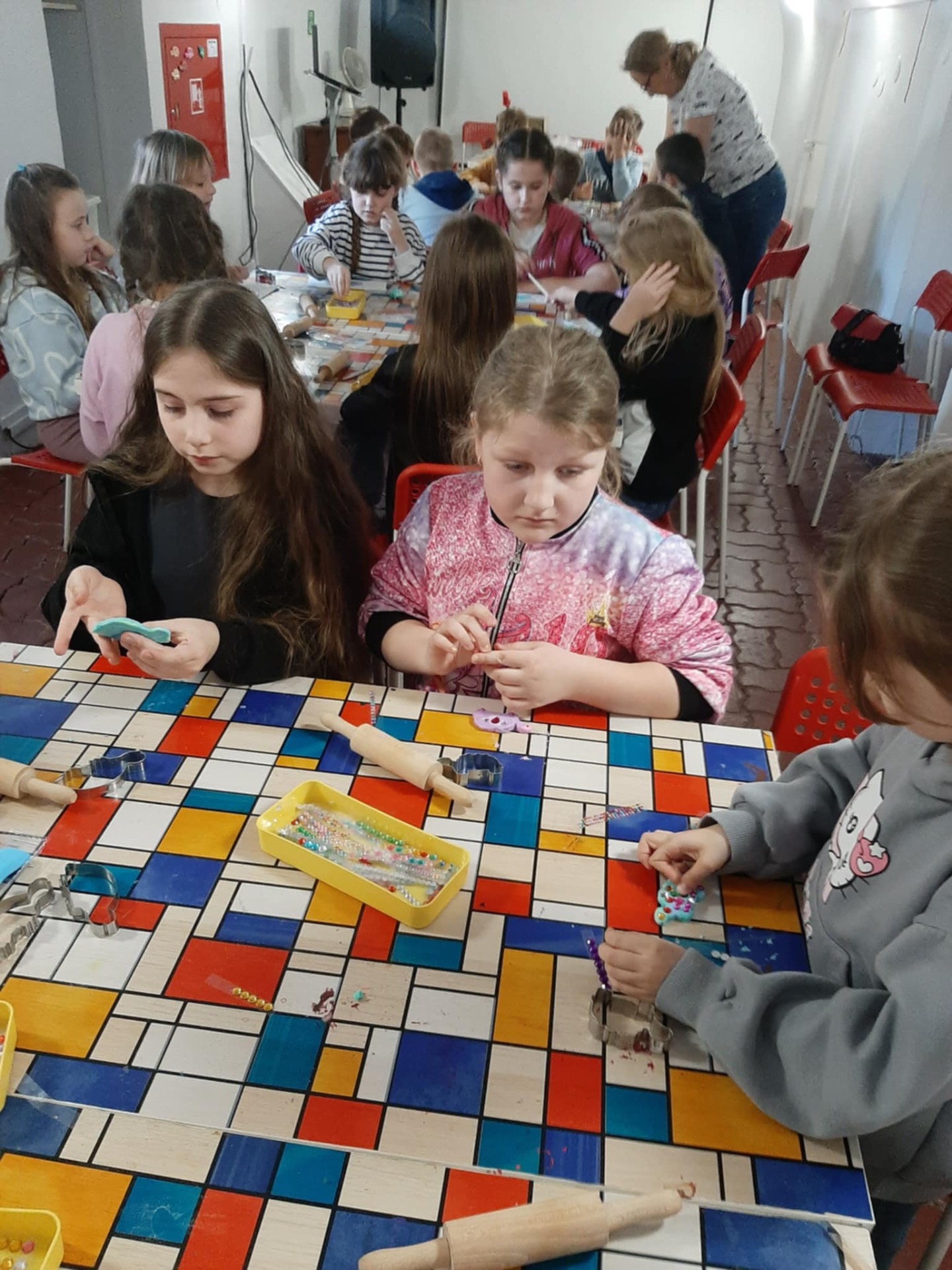 Podczas warsztatów każde dziecko otrzymało kawałek materiału i mogło stworzyć własne, małe dzieło sztuki. Zabawa z modeliny była nie tylko świetną okazją do rozwijania zdolności manualnych, lecz także wspaniałym sposobem na wyrażenie siebie. Dała również możliwości na kreatywne działanie. Dzieci, pełne zapału, formowały różnorodne kształty, od zwierzątek aż po abstrakcyjne formy, które później mogły ze sobą zabrać.