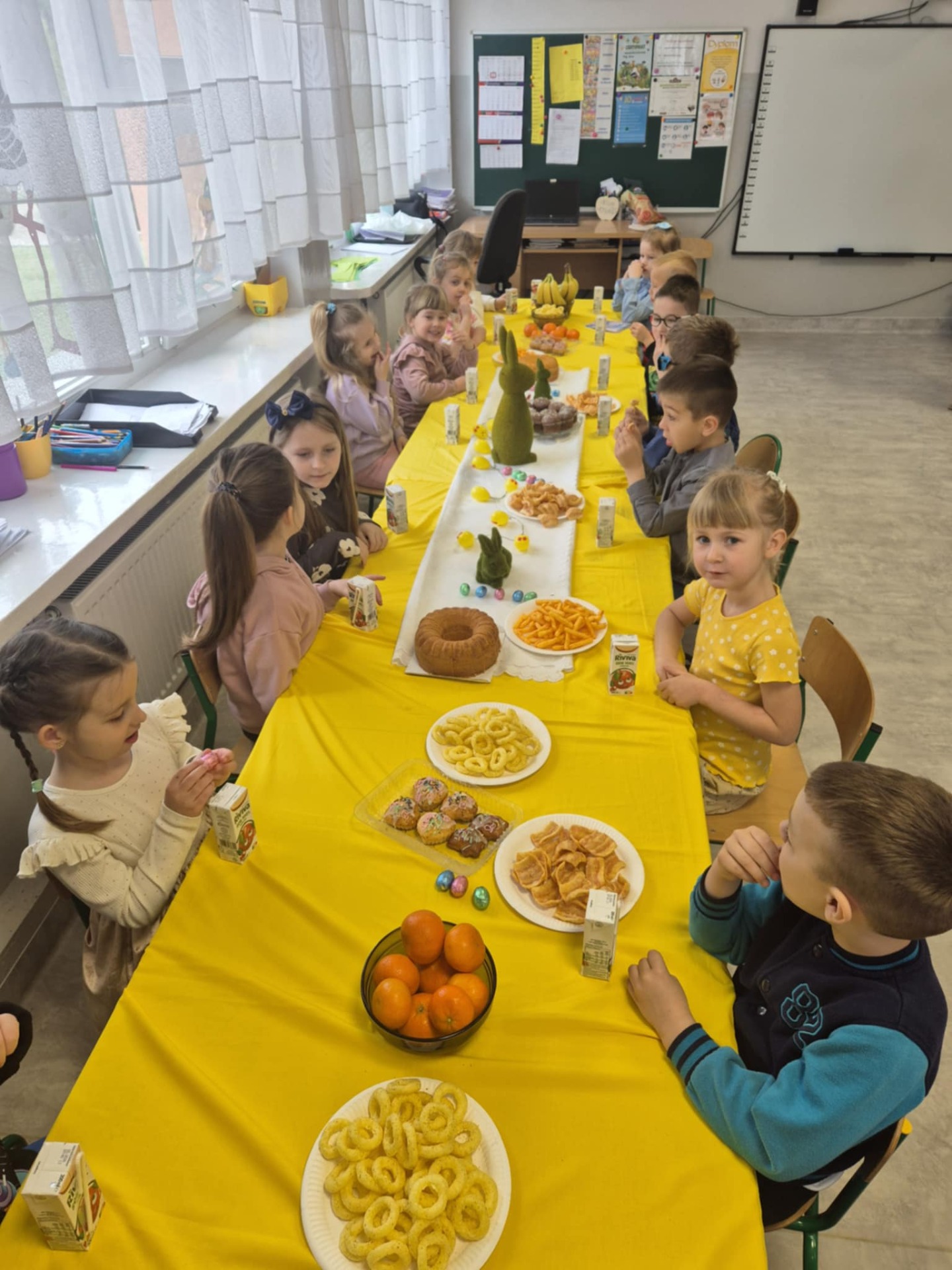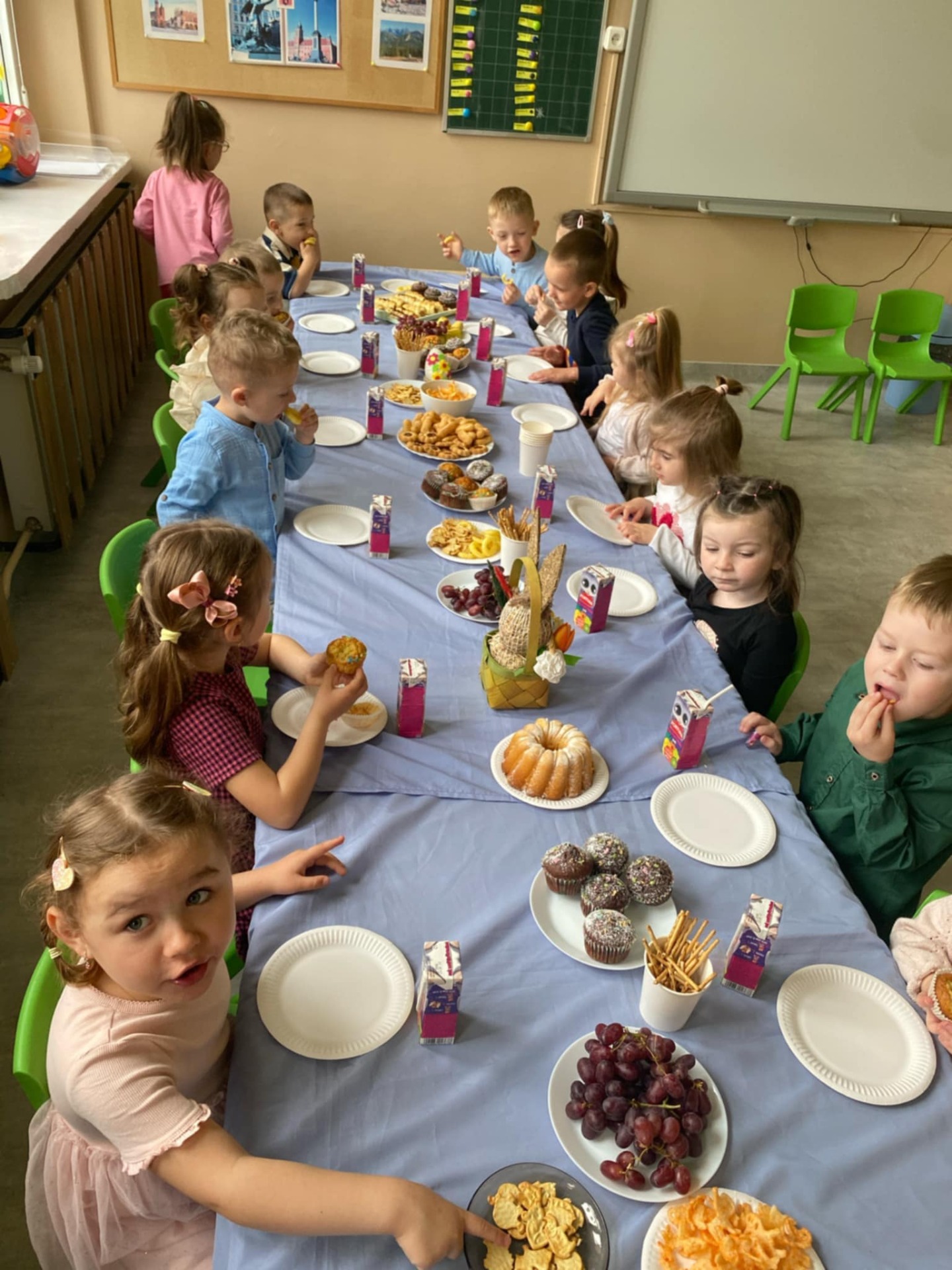 Również w naszych oddziałach przedszkolnych ta tradycja jest kultywowana. W Wielką Środę, 16 kwietnia, dzieci z grupy “Misie” i “Wesołe Żuczki” zasiadły do śniadania wielkanocnego. Przedszkolaki aktywnie włączyły się w przygotowanie świątecznego stołu. Na stole pojawiły się tradycyjne wielkanocne