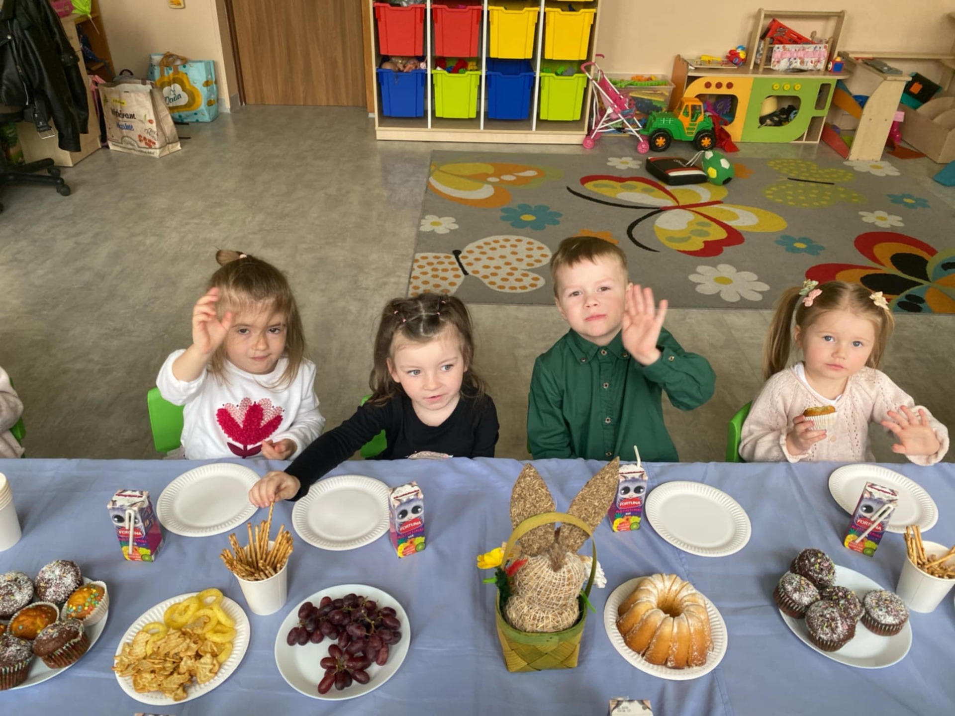 przysmaki, nie zabrakło także symboli wielkanocnych. Podczas spotkania przedszkolaki nauczyły się wiersza oraz śpiewały piosenki związane z tematyką wiosenno-świąteczną.