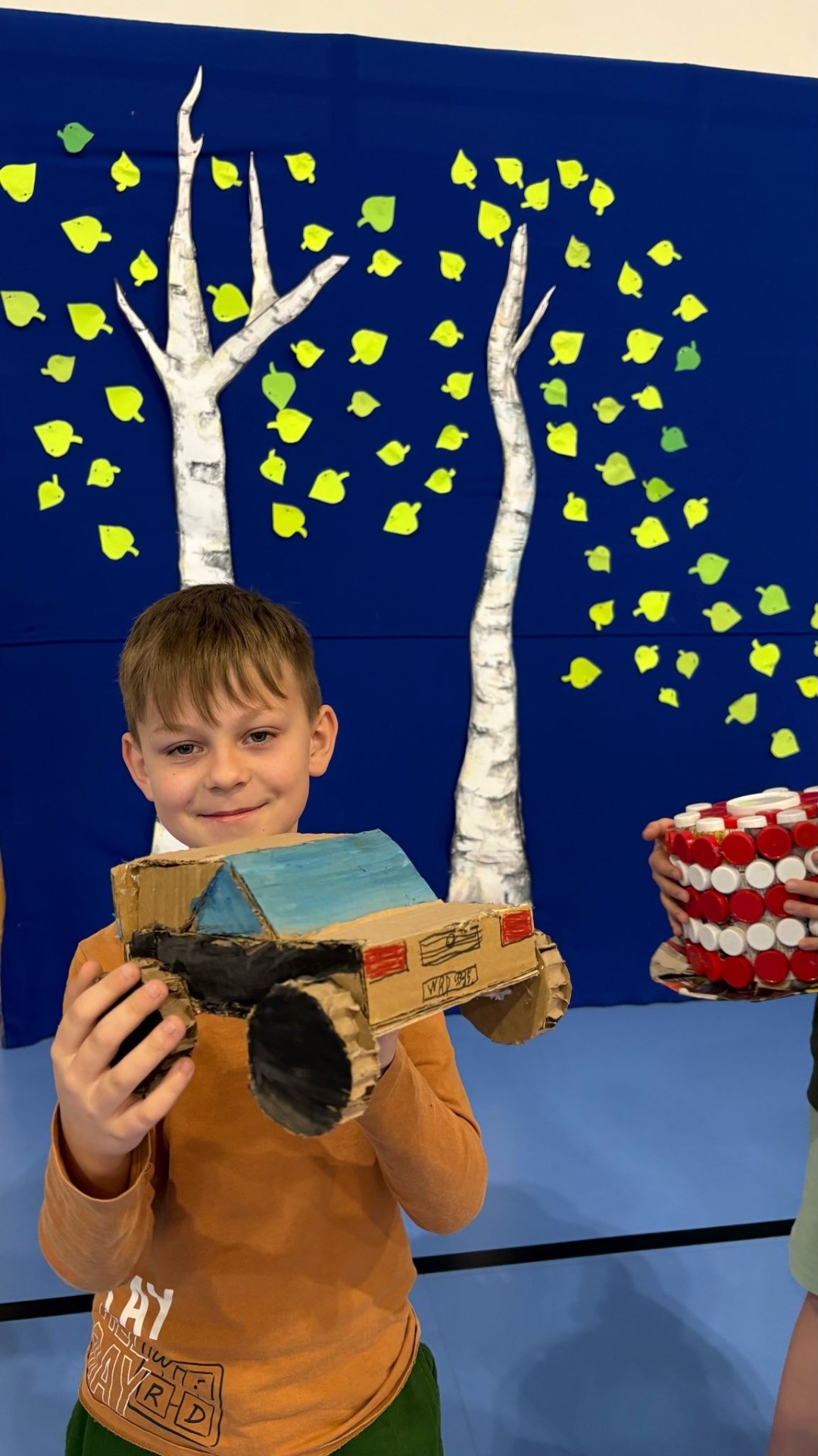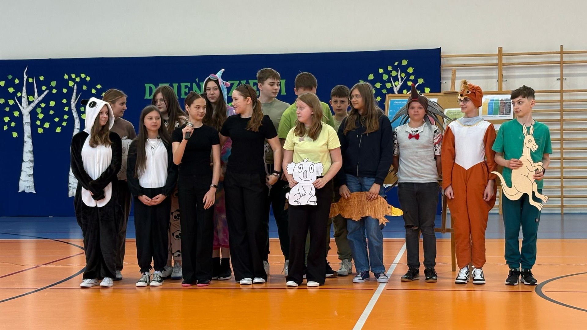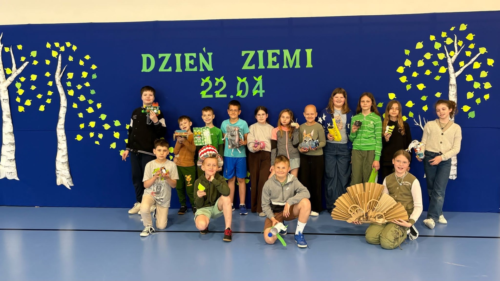 Z tej okazji w naszej szkole 26.04.2025r. odbył się Ekokoncert. Program był bardzo urozmaicony. Dzieci z oddziałów przedszkolnych oraz uczniowie klas 1–8 naszej szkoły pod czujnym okiem wychowawców aktywnie włączyli się w jego przygotowania. Każda klasa przedstawiła swój pomysł na przybliżenie tematyki ochrony środowiska oraz promowania postaw proekologicznych. Zaprezentowane przez poszczególne zespoły klasowe występy pokazały kreatywność, wyobraźnię i twórcze myślenie naszych uczniów. Mieliśmy przyjemność: obejrzeć przedstawienie "Zielona planeta" w wykonaniu uczniów klasy 8, wysłuchać piosenek, m.in. „Najpiękniejsza z planet”, „Zostaw przyrodę przyrodzie”, „Ziemia to wyspa zielona” , „Świat bez wody” oraz wierszy o tematyce ekologicznej. Prezentacje przygotowane przez uczniów przypomniały nam, co zagraża naszej plancie, jak ją chronimy oraz co każdy z nas może zrobić, aby zadbać o nasze środowisko i zapobiegać jego zanieczyszczeniu. Podczas występów mogliśmy podziwiać stroje wykonane z naturalnych elementów i surowców wtórnych oraz zabawki z odpadów. Nie zabrakło też haseł ekologicznych.