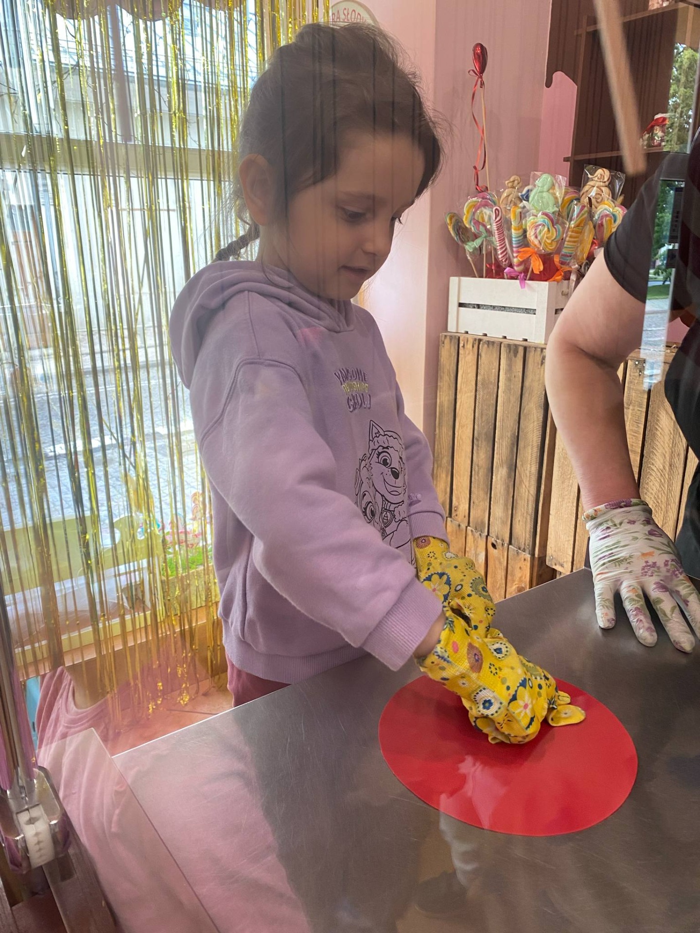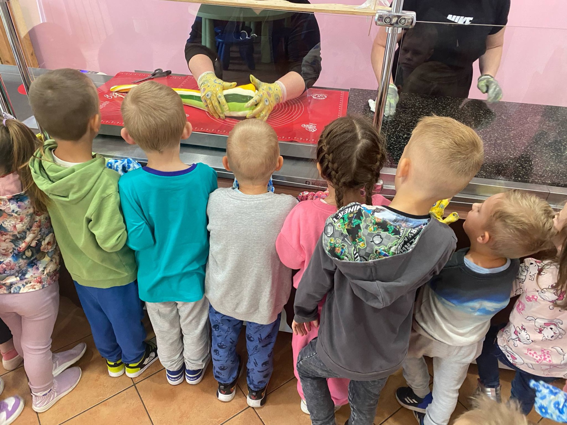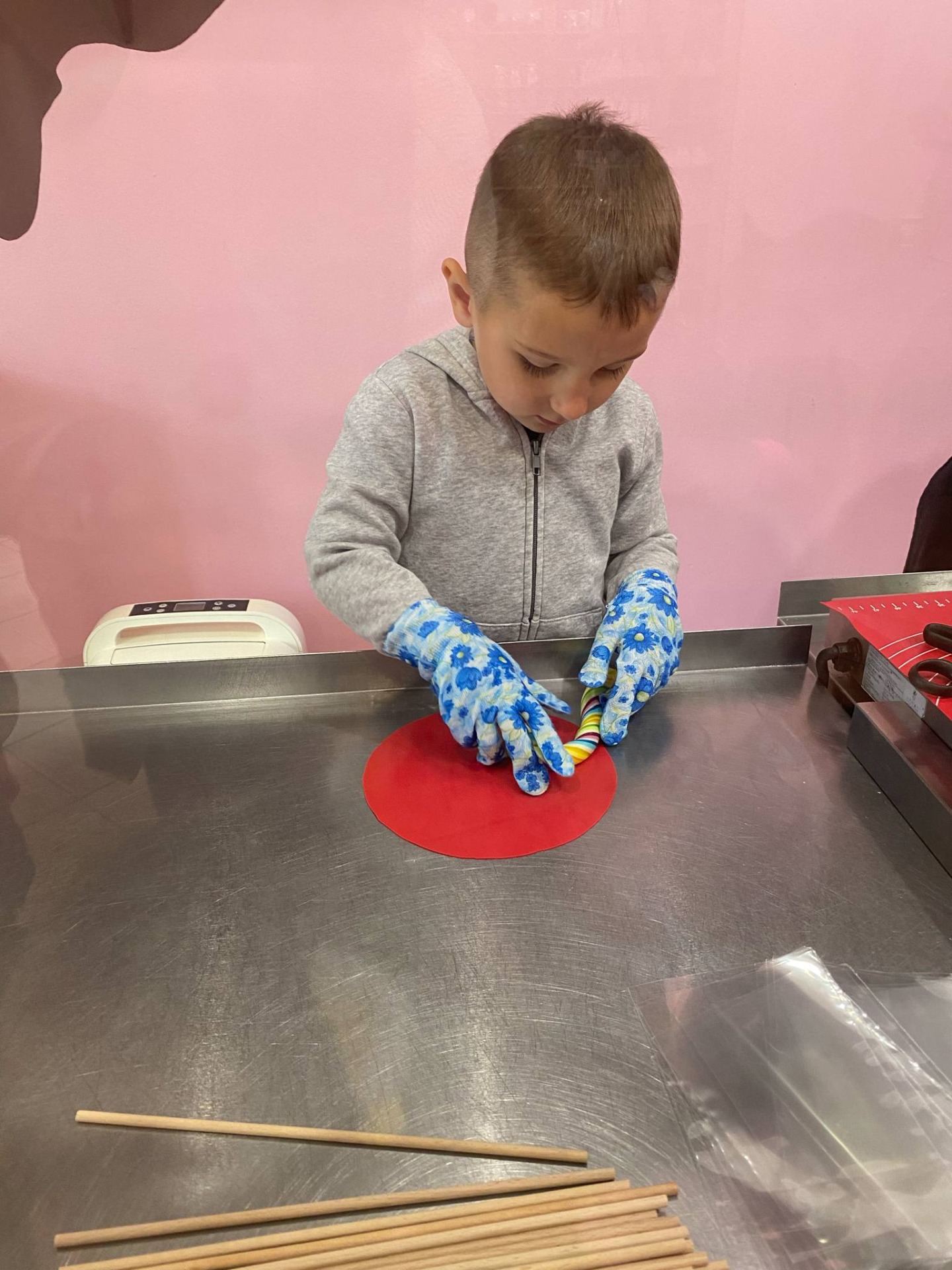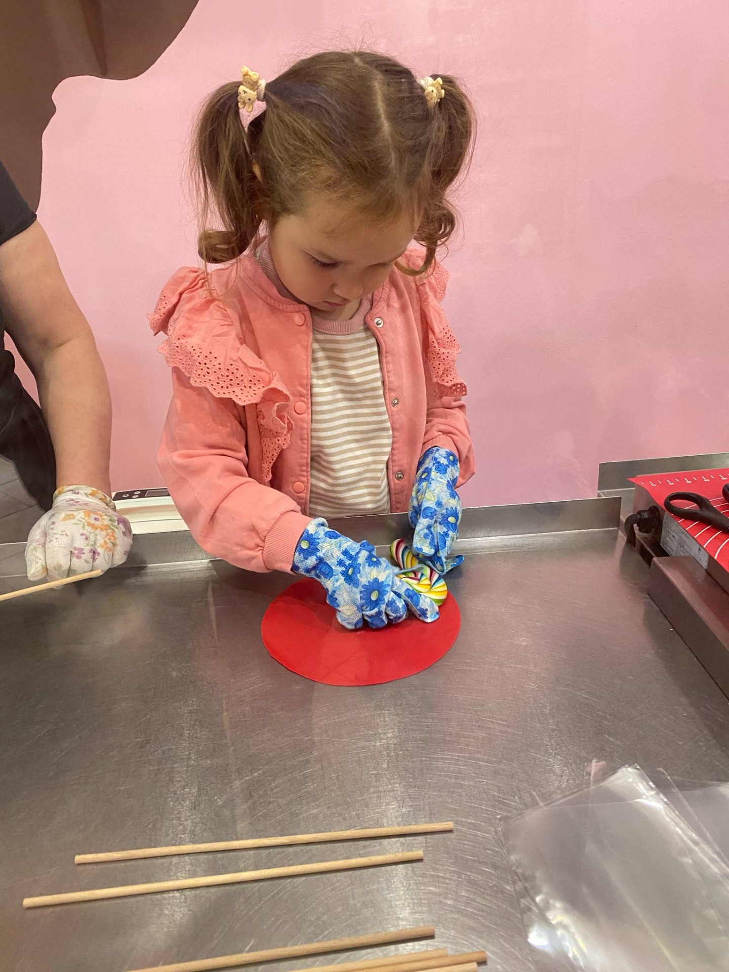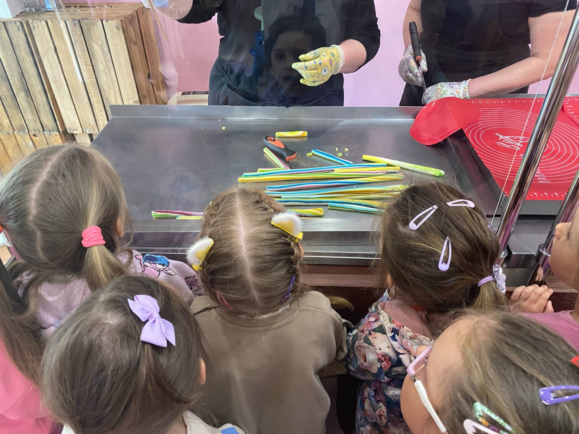 Grupa "Misie" miała okazję odwiedzić Manufakturę Słodyczy " Sama Słodycz" w Radomiu, gdzie dzieci uczestniczyły w pokazie ręcznego tworzenia kolorowych lizaków i cukierków. Obserwowały proces od wylania gorącego karmelu na stół, przez dodanie naturalnych barwników, aż po formowanie słodkości. Każde dziecko samodzielnie wykonało własnego lizaka, co sprawiło im ogromną radość.
