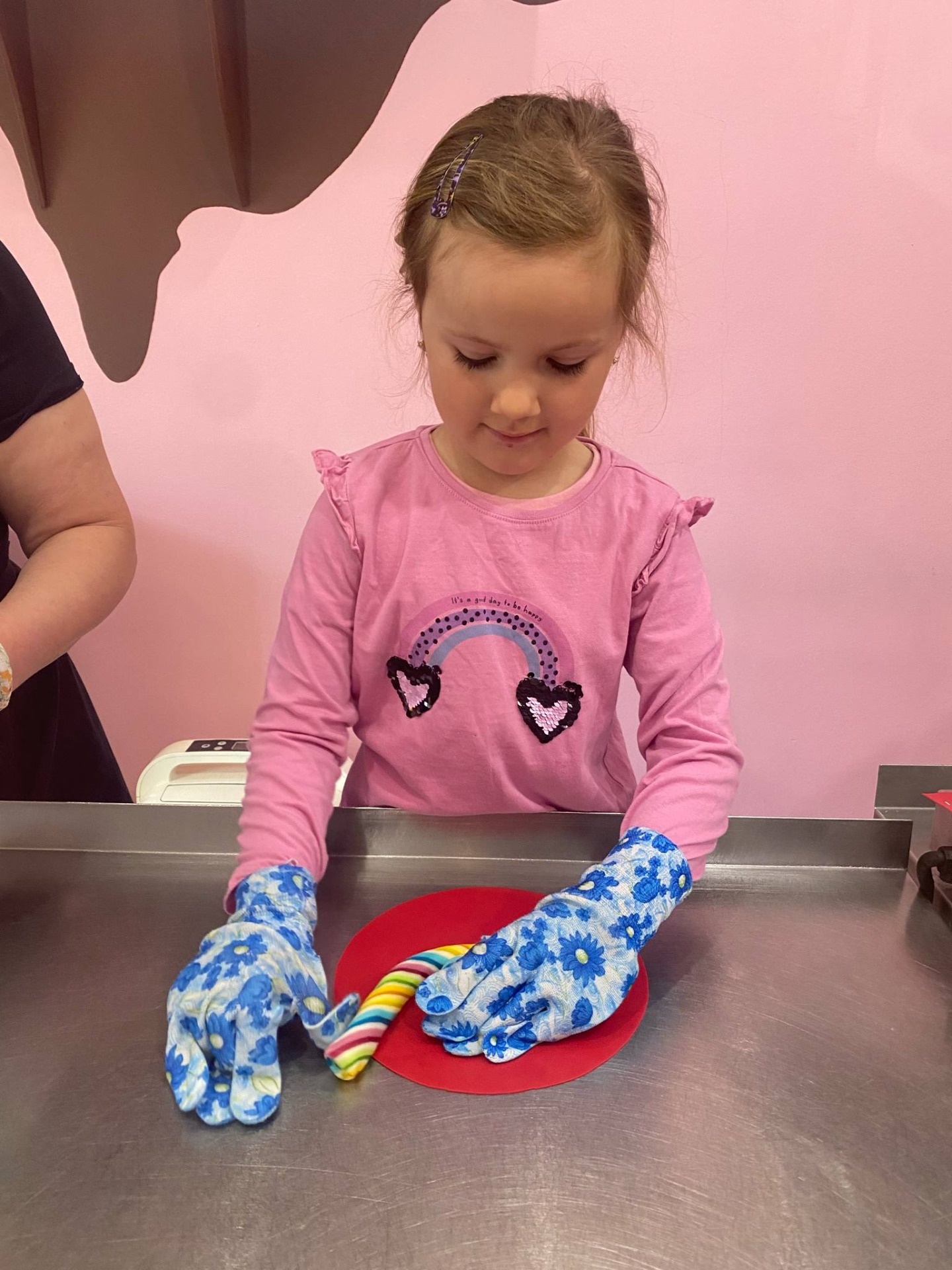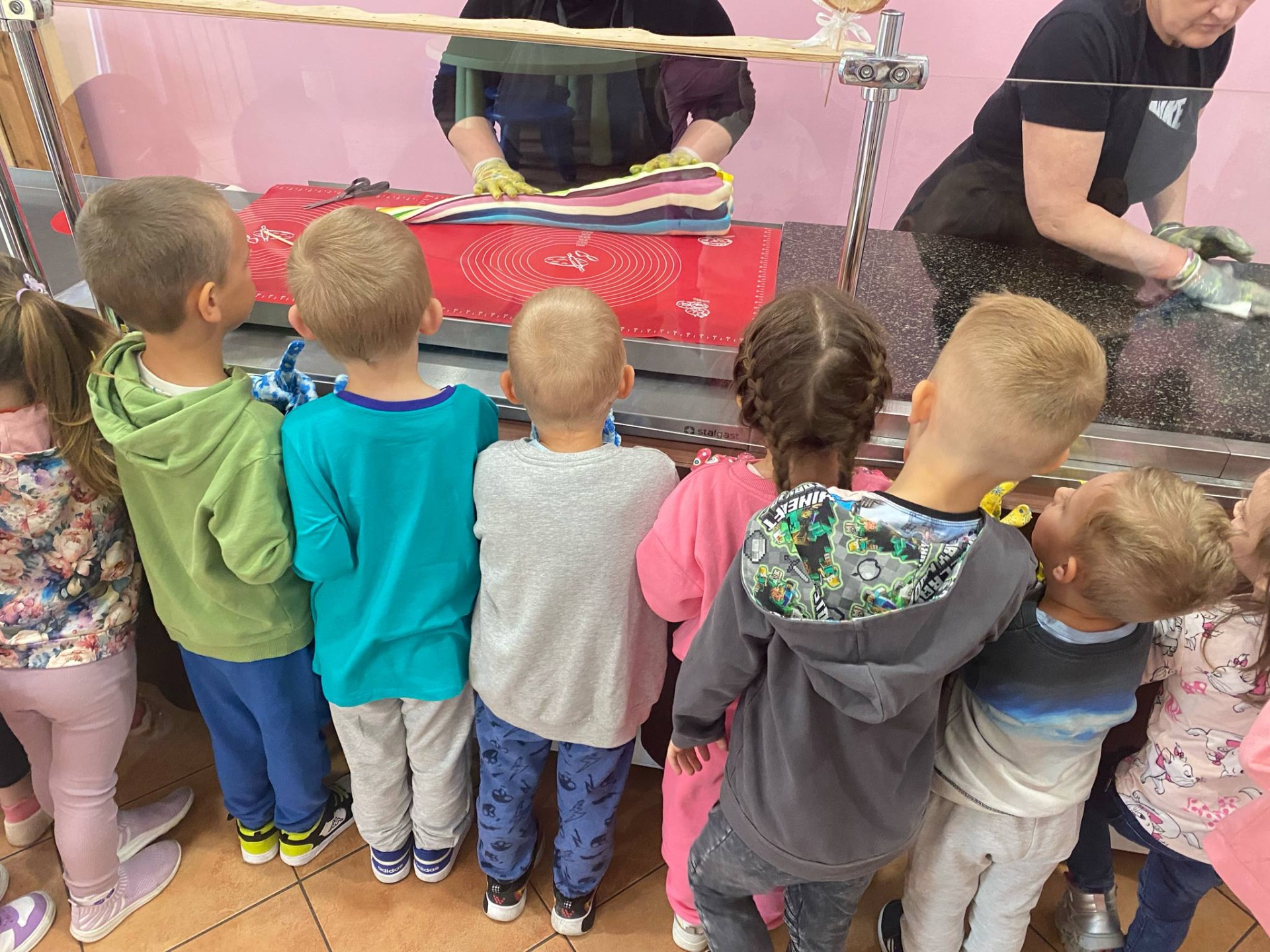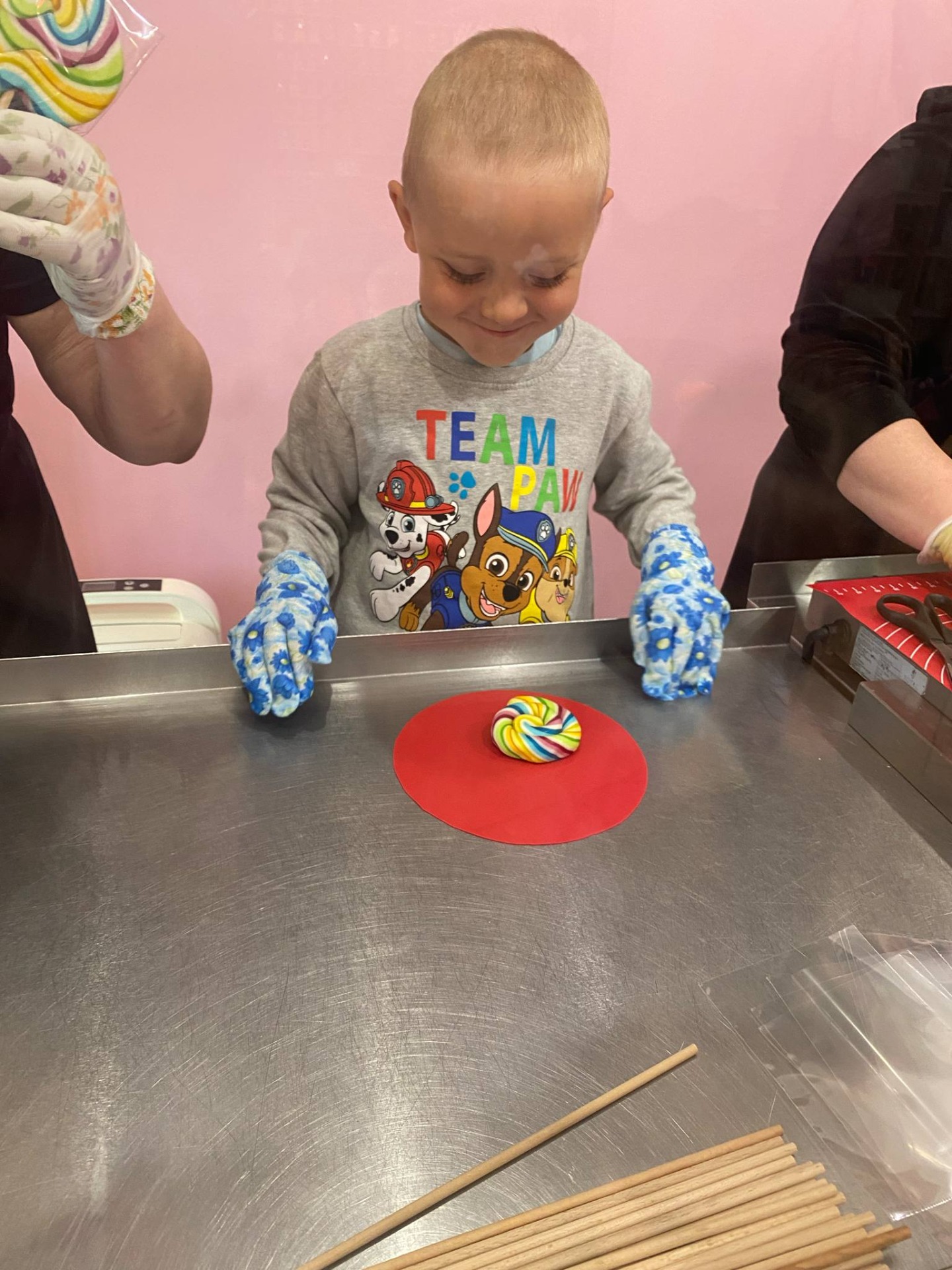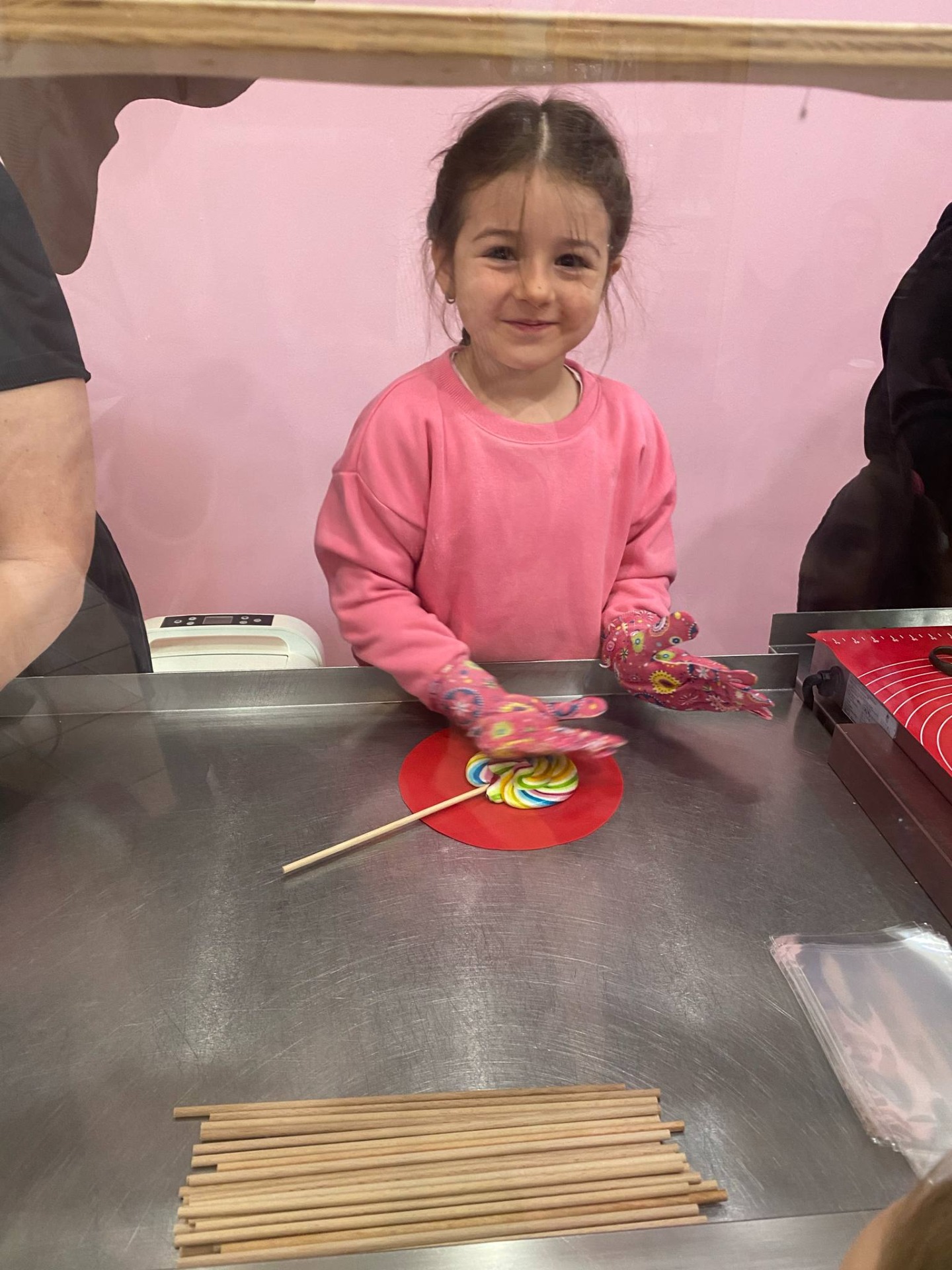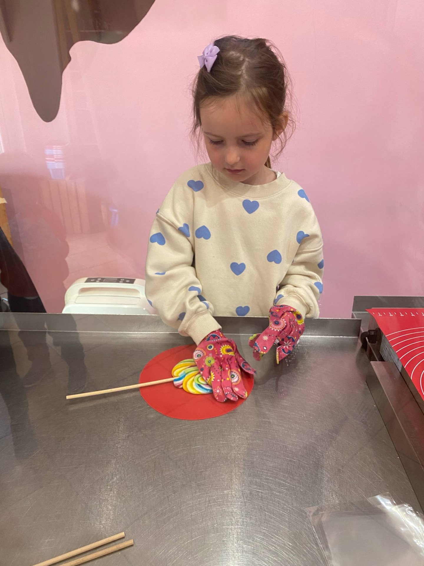 Grupa "Misie" miała okazję odwiedzić Manufakturę Słodyczy " Sama Słodycz" w Radomiu, gdzie dzieci uczestniczyły w pokazie ręcznego tworzenia kolorowych lizaków i cukierków. Obserwowały proces od wylania gorącego karmelu na stół, przez dodanie naturalnych barwników, aż po formowanie słodkości. Każde dziecko samodzielnie wykonało własnego lizaka, co sprawiło im ogromną radość.