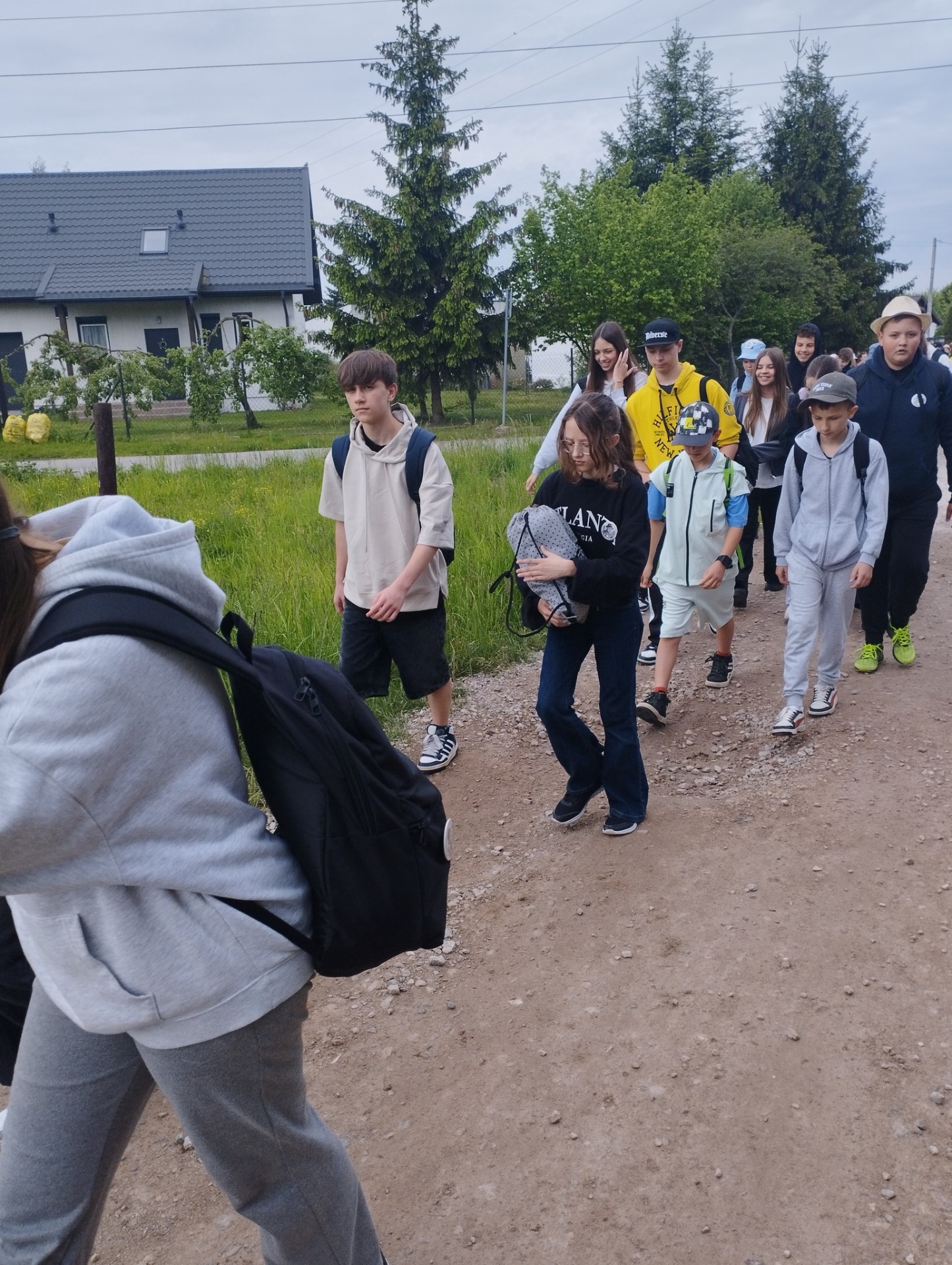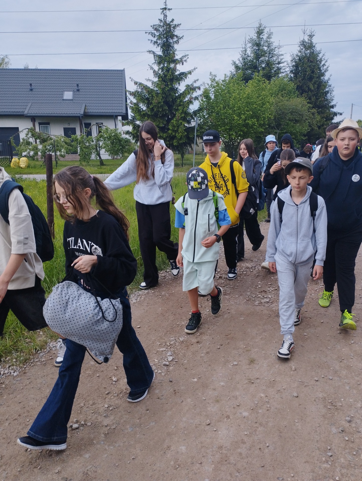 Uczniowie podczas marszu mogli podziwiać przyrodę, ale również brali udział w teście wiedzy i spostrzegawczości związanym z Gombrowiczem oraz historią regionu.