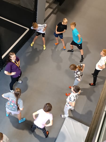 Już od samego wejścia na uczestników czekały liczne atrakcje - tory przeszkód, ścianki wspinaczkowe, trampoliny oraz różnorodne wyzwania sprawnościowe. Każdy mógł spróbować swoich sił i przekonać się jak ważne są zwinność, siła, wytrwałość i współpraca. Wyjazd uczył wzajemnego wspierania się, przełamywania własnych barier oraz dbania o aktywność fizyczną. Radości i śmiechu było co niemiara, a atmosfera sprzyjała budowaniu więzi między uczniami.