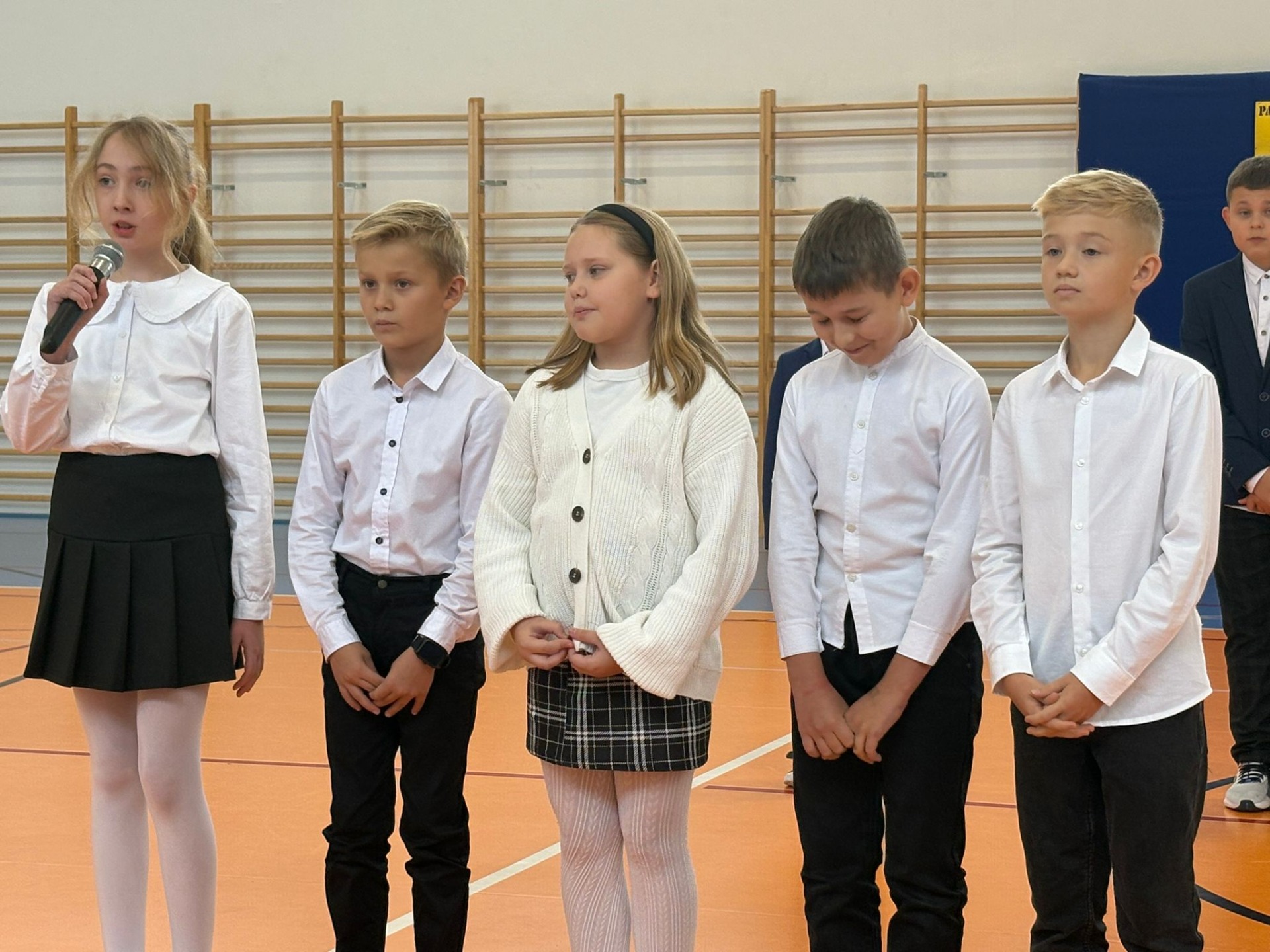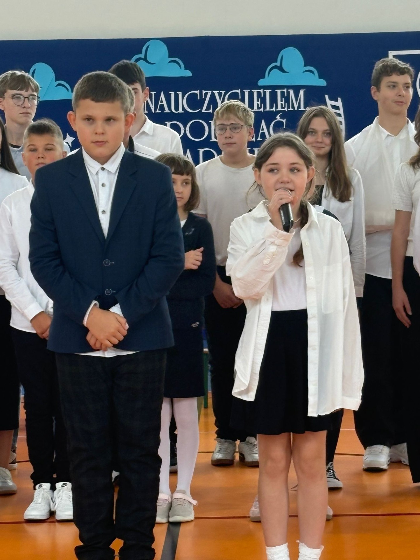 Podczas uroczystości uczniowie klasy IV i VIII zaprezentowali program artystyczny, w którym nie zabrakło słów wdzięczności, piosenek i wierszy dedykowanych nauczycielom. W części poświęconej Świętemu Janowi Pawłowi II, patronowi naszej szkoły, uczniowie przypomnieli jego nauczanie o miłości, szacunku i wartości pracy nauczyciela.
