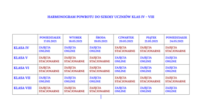 HARMONOGRAM POWROTU DO SZKOŁY UCZNIÓW KLAS...